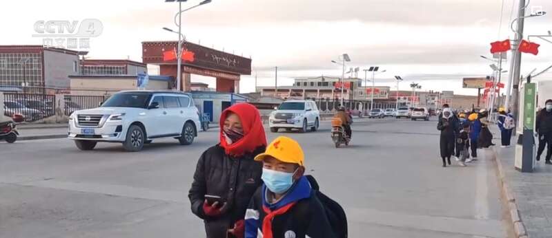 学校的学生绝大部分来自牧区,寄宿制能够保证更好的教学质量,但并不强制。晚上下课后,离学校近的学生由家长接走,格桑坚才则和小伙伴去食堂吃晚饭。学校还配备生活老师,照顾学生的日常起居、提供日用品。这些费用都由中国从1985年开始,对西藏自治区实施的教育“三包”政策负担。包吃、包住、包学习费用,学生家庭不用出一分钱。2023年这一政策的补助金额又再次提高,达到年生均4000—5000元。这所学校的升学率能达到100%。