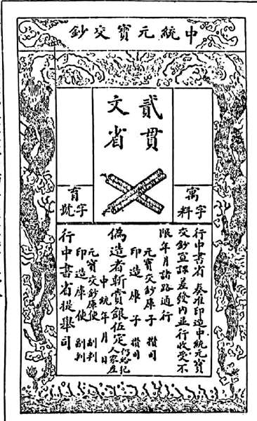 宋真宗大中祥符八年(1015年),宋真宗对大臣说:“银两八百,金五千。”(《续资治通鉴长编》卷85)1两白银只能换800文铜钱,1两黄金则换5000文。