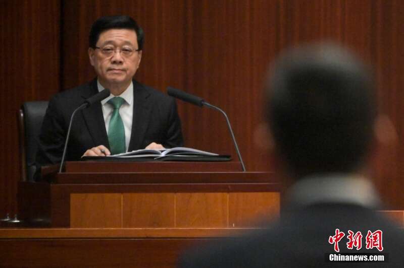 10月26日,香港特区行政长官李家超出席立法会《行政长官2023年施政报告》答问会,回答立法会议员提问。图为李家超出席答问会。