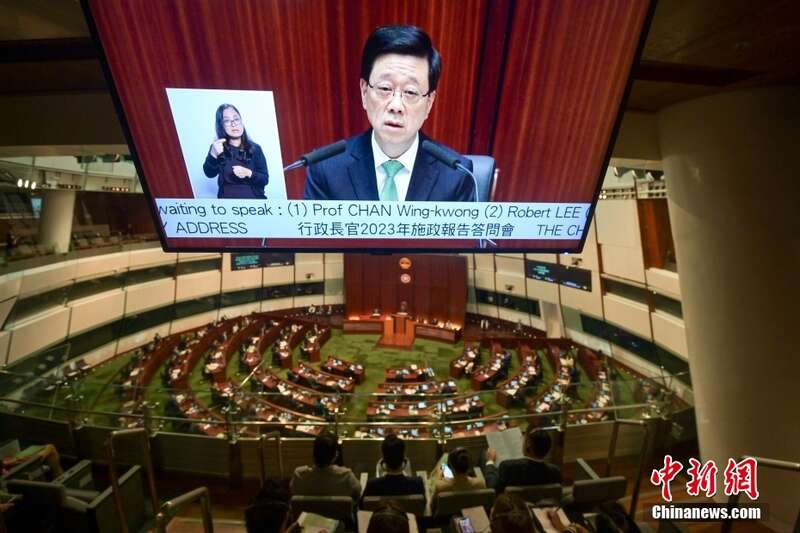 10月26日,香港特区行政长官李家超出席立法会《行政长官2023年施政报告》答问会,回答立法会议员提问。图为答问会现场。