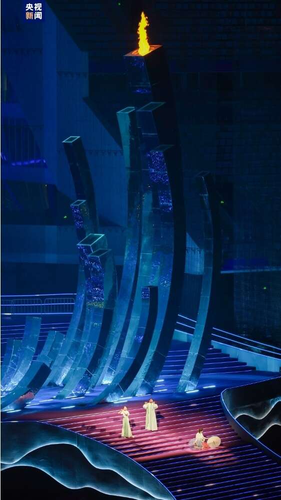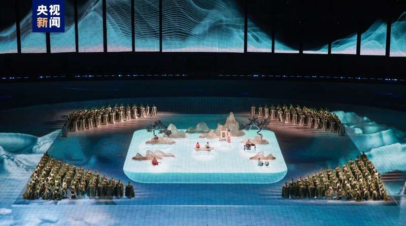 视觉方面,闭幕式以汝窑瓷器和宋代绘画汲取灵感,使用中国传统的天青色为底色,地屏以中国传统绘画的扇面影像相配合,用现代化的视觉语言表现出中国文化的气韵。