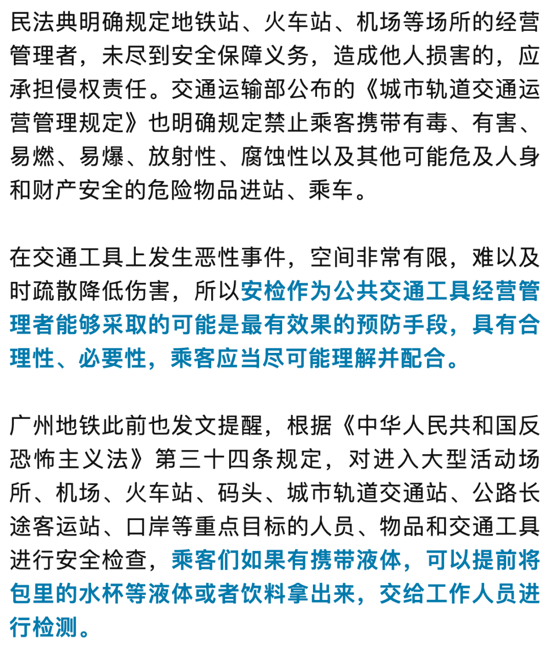 经办法官指出,安检是地铁公司履行安全保障义务的必要手段,乘客应尽可能支持和配合。