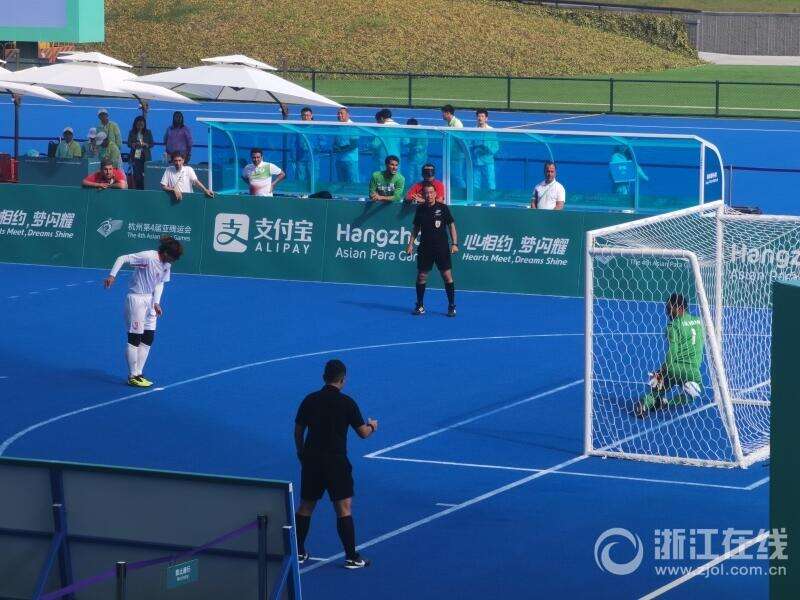 浙江在线10月28日讯(记者 杨烁)10月28日中午,盲人足球在杭州拱墅运河体育公园体育场开赛,中国队迎战伊朗争夺金牌。常规时间两队打成0:0平,在最后的点球大战中,中国队以2:1战胜伊朗队夺得金牌。