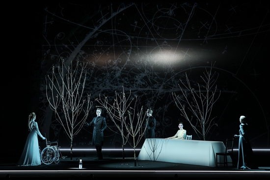 “一切如何开始?”“我们能预测未来吗?”“黑洞中是什么?”身患残疾的天才物理学家提出一个个命运攸关的“大问题”,这些句子由罗伯特·威尔逊亲自录音,成为贯穿《H-100秒到午夜》的戏剧性元素。