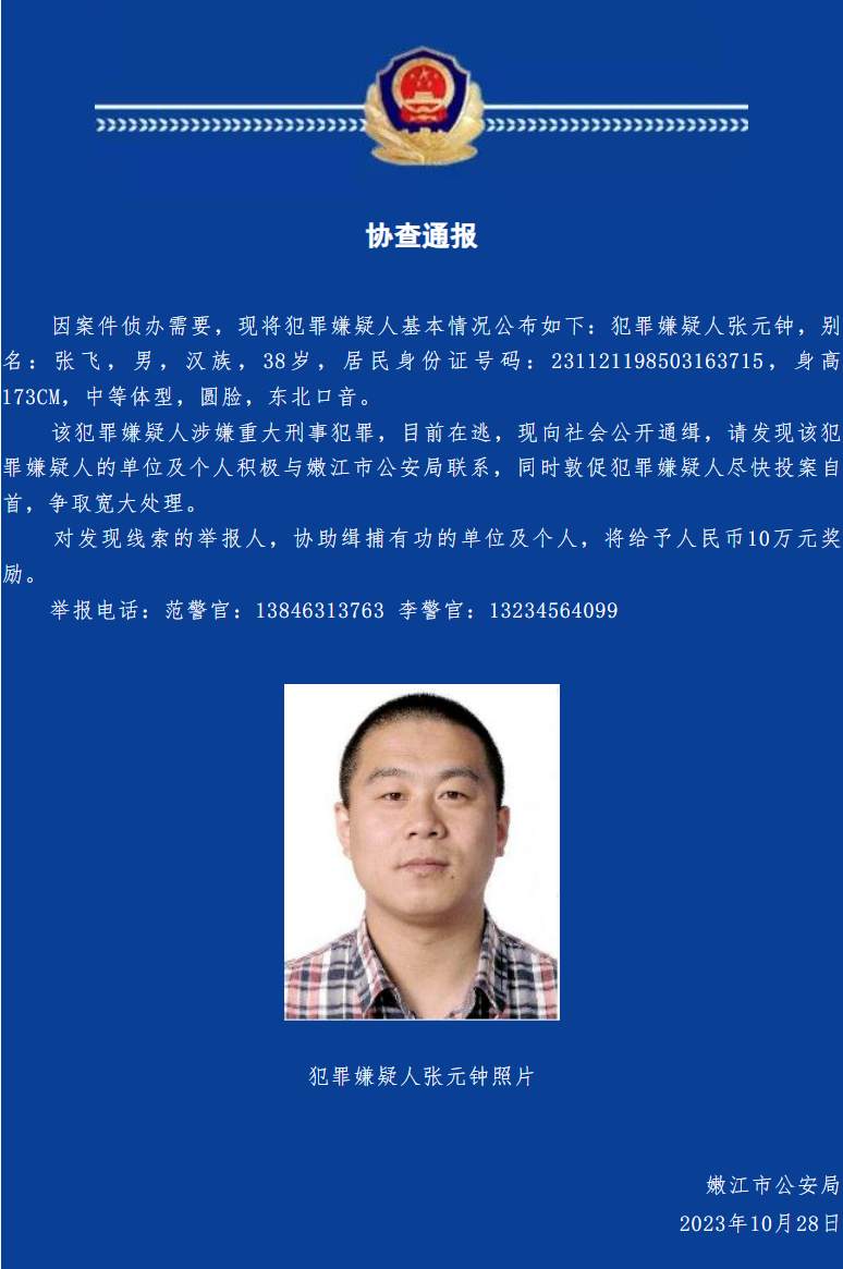 10月28日,黑龙江省嫩江市公安局发布协查通报: