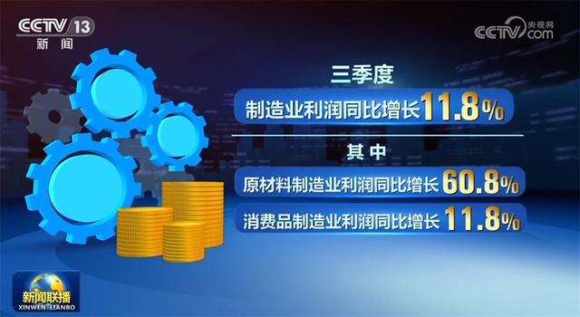 三季度,制造业利润同比增长11.8%,其中,原材料制造业利润同比增长60.8%,消费品制造业利润同比增长11.8%。