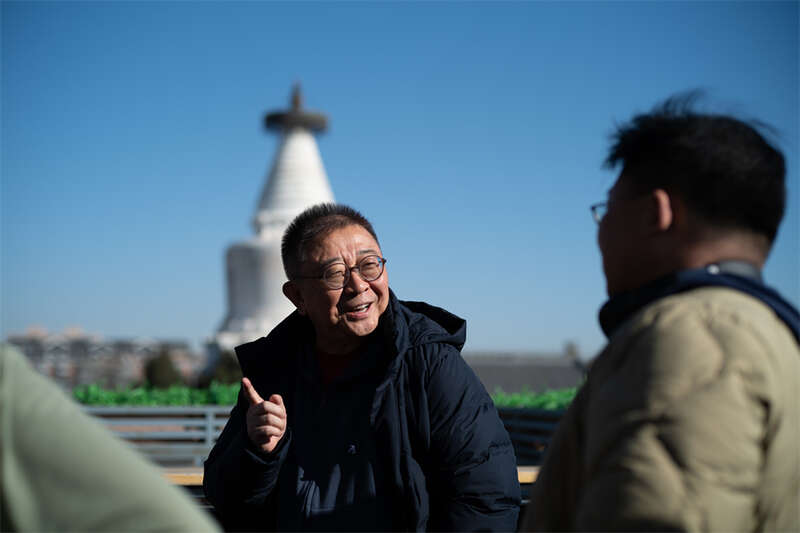 张律:这部电影讲的是与白塔有关的空间,以及在这个空间中产生的情感。北京非常平整、规矩,在这样的城市布局中,出现了一个浑圆向上立起的建筑,看起来突兀,但也正是它的浑圆和白色,还会反光,让人感觉在情感中、精神里得到了一丝慰藉。说来也巧,我们这次拍摄期间,剧组人员住的酒店就叫做“白塔之光”。