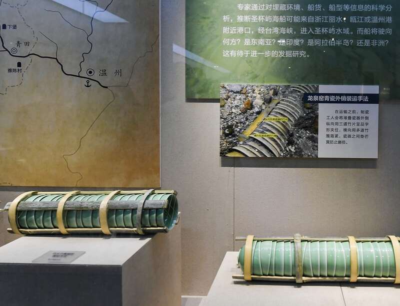 早在宋元时期,龙泉青瓷产品远销亚洲、非洲、欧洲的50多个国家和地区。大约700年前,一艘满载龙泉青瓷的古代商船突发意外,沉没在漳州古雷圣杯屿海域。从2010年开始,考古调查队经过探测,从这艘沉船上发掘出水文物标本约1.7万件,其中99%为龙泉青瓷。