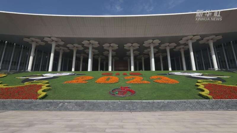 记者在现场看到,国家会展中心(上海)南广场的主体景观已基本搭建完成,以进博会六周年的主题元素设计,整体由“6”和吉祥物熊猫“进宝”组成,总体呈现出鲜明的识别度。