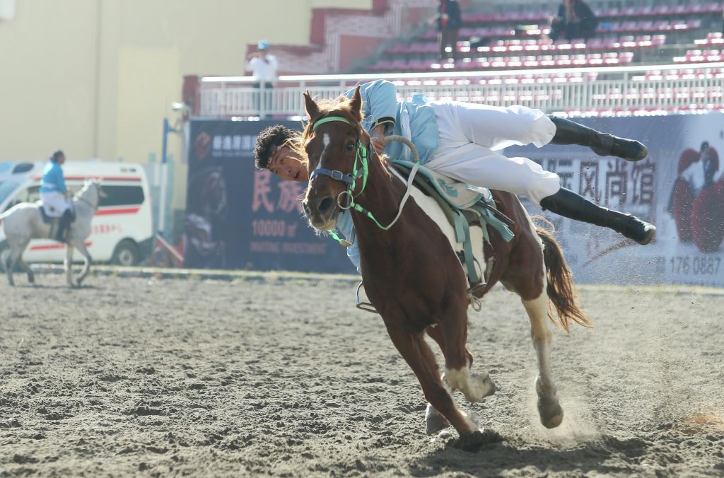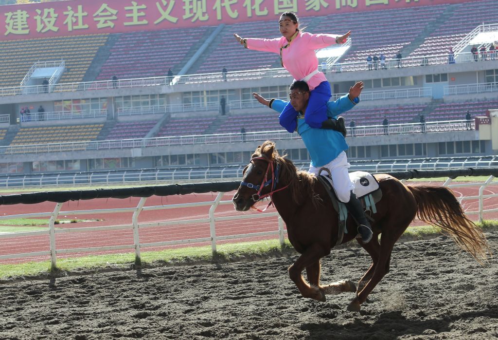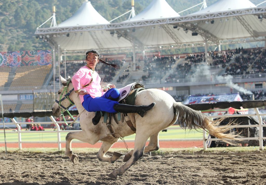 2023年10月30日,云南迪庆,选手进行马术表演。当日,金秋赛马节在云南省迪庆藏族自治州香格里拉市举行。中新社记者 黄兴鸿 摄