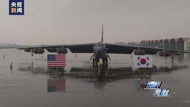 10月17日,美国“三位一体”核打击空中平台B-52H战略轰炸机在韩国清州空军基地降落。