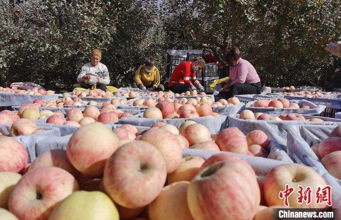 泽普县阿克塔木乡恰喀村是远近闻名的苹果专业村,这几日,果农们一边忙着采收,一边忙着销售,香甜的苹果映红了每一个果农的笑脸。在果农依迪热斯·阿塔吾拉家的果园里,数名工人分工配合,进行采摘、分拣、包装、称重、搬运等工作,忙得不亦乐乎。