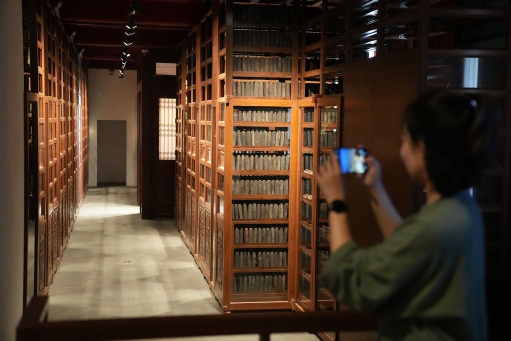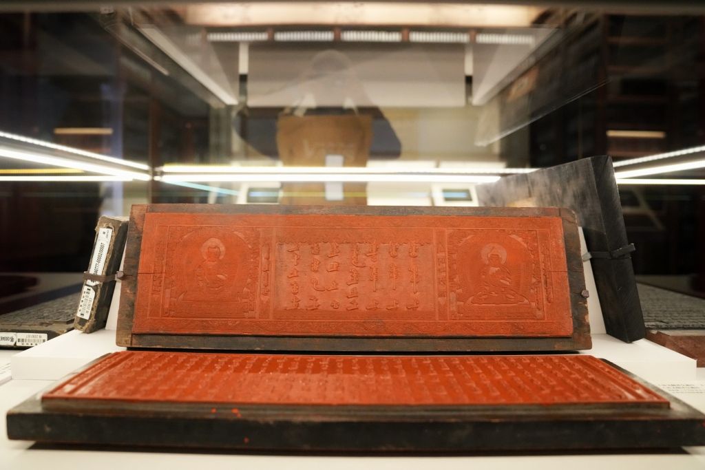 2023年10月30日,北京,“吉光片羽——故宫博物院藏清代宫廷雕版文物展”开幕式在故宫博物院敬胜斋举行,展览揭幕仪式。故宫博物院在对院藏雕版文物进行整理、保护、研究的基础上,在太和门内东南崇楼及朝房开设“雕版馆”,同时举办“吉光片羽——故宫博物院藏清代宫廷雕版文物展”,库房式陈列展出文物15000余件(组)。这是故宫博物院建院以来,首次举办该类专题文物展览。 中新社记者 史春阳 摄