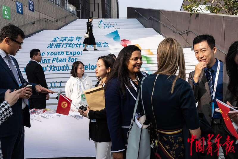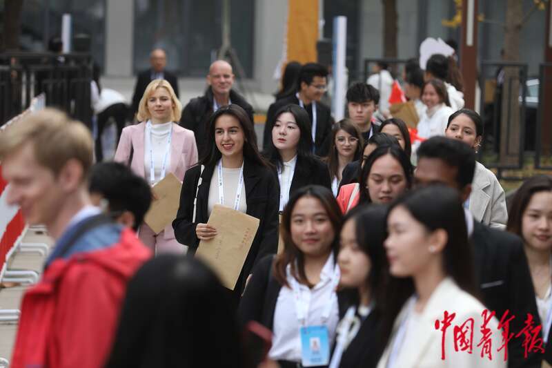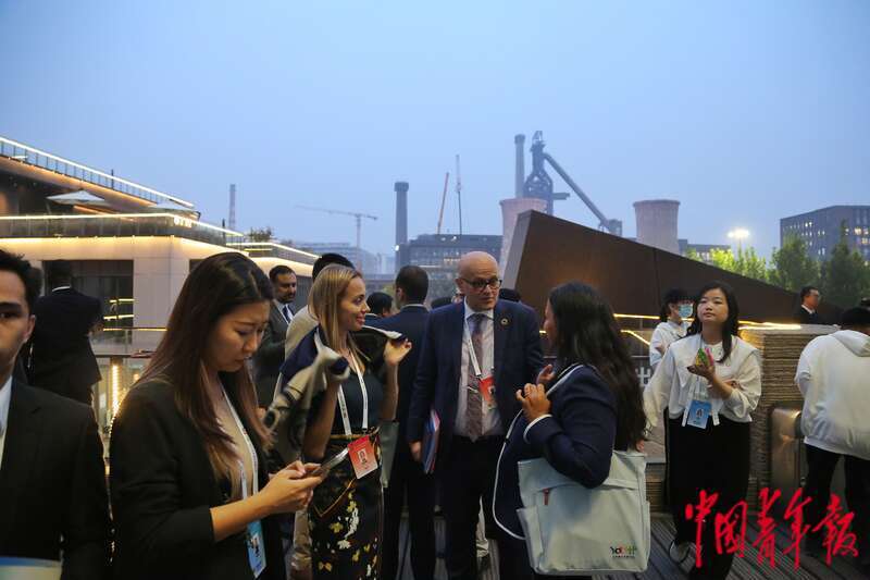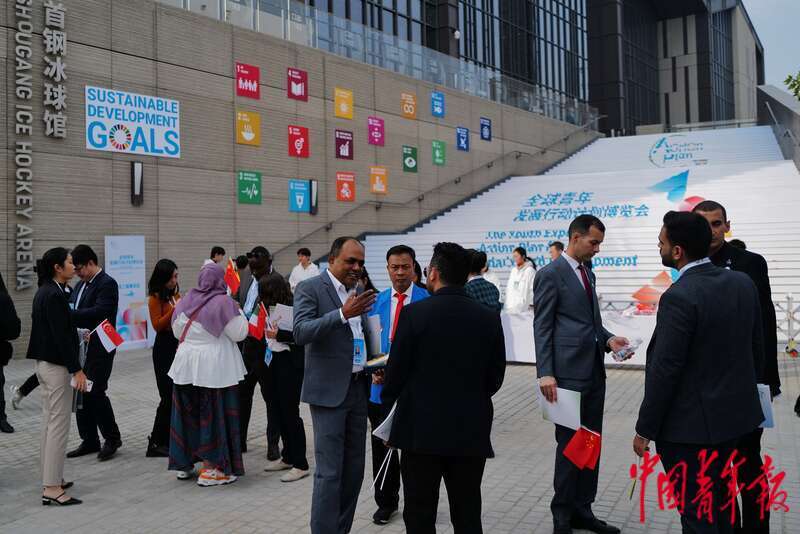 10月30日,北京首钢园,参加2023年世界青年发展论坛开幕式的各国代表前往参观全球青年发展行动计划博览会。中青报·中青网记者 李隽辉/摄