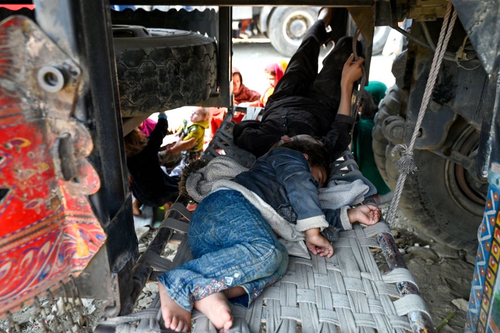 当地时间2023年10月30日,巴阿边境托尔卡姆,阿富汗难民乘坐卡车抵达。巴基斯坦向170万非法居住在该国的阿富汗人发出命令,要求他们在11月1日前离开,否则将被驱逐出境。