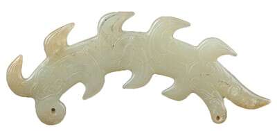 “玉蕴华章”展厅展示了自大汶口文化时期、商周时期至清代的玉器精品。其中有一件西周夔龙纹玉佩格外精美。此器为青白玉制成,大体呈璜形,两端分叉,外弧边有4个扉牙,内弧边有3个扉牙,内外扉牙交错分布,倾斜方向相反,颇具动感。双面雕刻相同的纹饰,两端为螭龙纹,中部为相缠的龙身。器身两端各有一孔。专家认为此器是玉环的改制件,造型和纹饰体现了海岱地区文化特色。