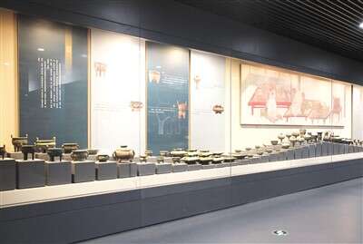据《左传》记载,滕国面积只有方圆50里,这样一个小国却能延续700多年,令人惊叹。滕国历代国君积极推行强国之策,尤其是战国时期的滕文公采纳孟子的治国思想,法先王、行仁政、施善教,政绩斐然。滕国被誉为“善国”,慕名来滕定居者络绎不绝。展厅里再现了滕文公向孟子问政的场景,展板上介绍了有关“善国”的5个历史故事。