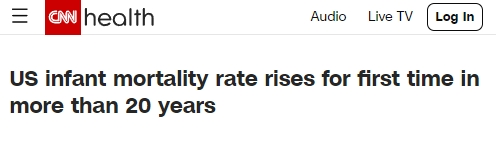美国疾病控制和预防中心(CDC)2021年的一项分析发现,虽然该国婴儿死亡总数与2020年相比有所增加,但死亡率保持不变,仍为每千名活产婴儿死亡5.44例。然而今年这份新报告引用了临时数据,发现婴儿死亡率上升到每千名活产婴儿死亡5.60例,这相当于2022年有20538名婴儿死亡。