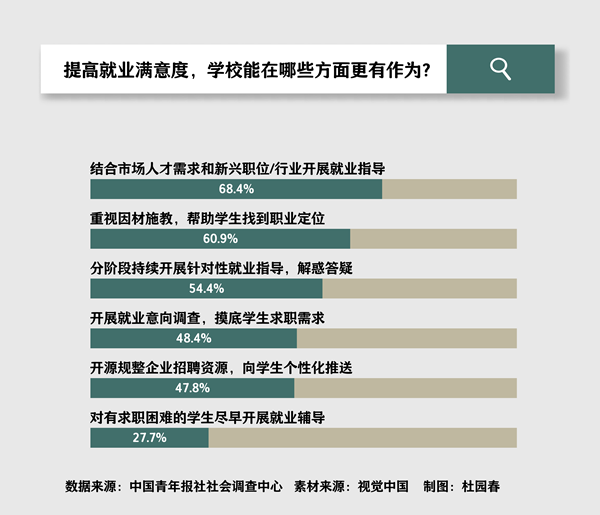 提高就业满意度,大家希望学校能在哪些方面更有作为?采访过程中,不止一名大学生提到,希望学校能够帮助大家做好对职业的了解。