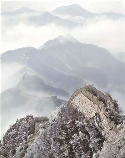 随着对长城的领悟,陈长芬走进了中国古老哲学思想的长河,去解读和思考:“中国古典哲学中的阴阳辩证,常常体现在我们的社会里、生活中。你看,远处山峰上有条长城,天空中悬浮着一条雪白的云带,多么协调,多么对应,多么富有天意!再看看,山顶上的长城敌楼和山腰中漫雾构成的阴阳分割又多么自然,多么神奇,多么富有哲理。”