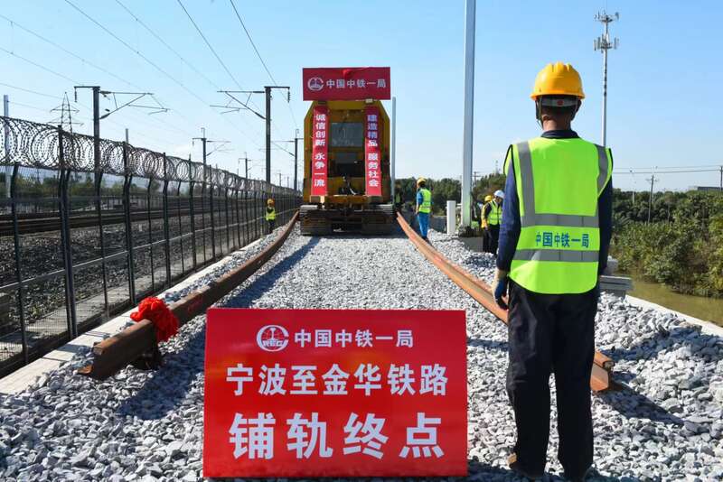 甬金铁路全线铺轨完成。中铁一局供图