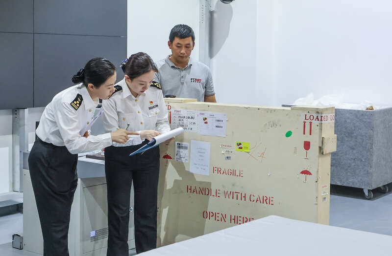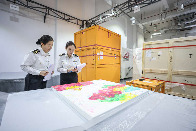 10月30日下午,第六届中国国际进口博览会(以下简称“进博会”)首批文化艺术品在位于上海自贸区的上海国际文物艺术品保税服务中心内完成了出区前的全部审批、查验手续,将以海关特殊监管区域“保税展示交易”形式,从上海自贸区外高桥保税区出发,前往进博会场馆。