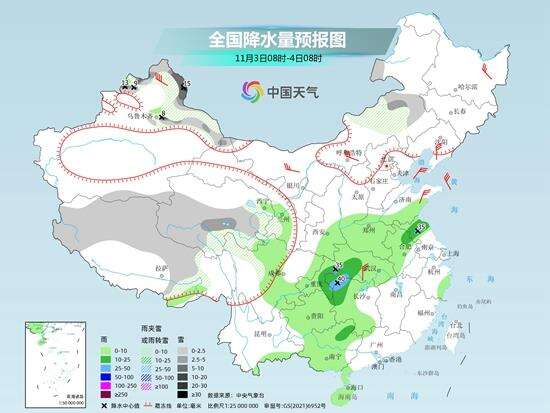 冷空气在带来降温的同时,还将制造大范围雨雪天气。今天,黄淮、江淮及贵州、重庆等地将出现大范围降雨,其中新疆北部、青海中南部、内蒙古东南部、西藏等地部分地区有小到中雪或雨夹雪,其中,新疆塔城、阿勒泰和沿天山地区局地有大到暴雪。江苏北部、安徽东北部、重庆东部、湖北西部、湖南西北部等地部分地区有中雨,局地有大雨。