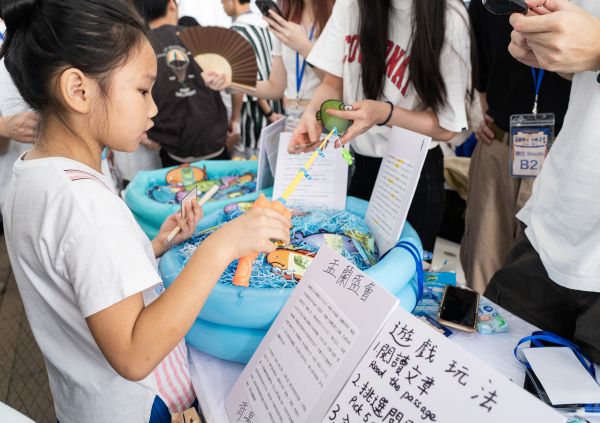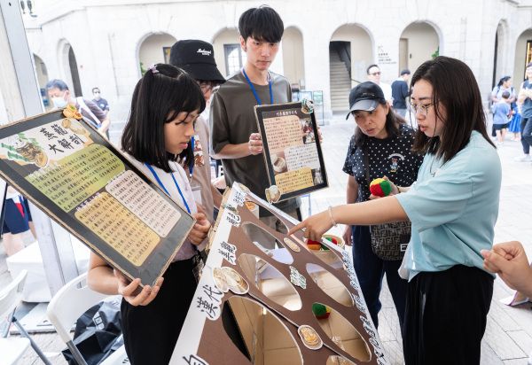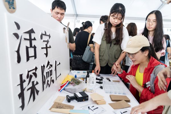 2023年11月4日,一场由青年人主要参与的“香港文化节——非物质文化遗产市集2023”在香港特区著名地标景点“大馆”举行。市集的主题为“穿越时空 玩转文化”,青年人在市集上通过自己设计的小游戏、传统工艺体验、工作坊等方式向过往市民游客介绍香港本地及中国悠久的历史文化。图为市民游客通过体验拣字钉的方式了解中国传统活字印刷术。