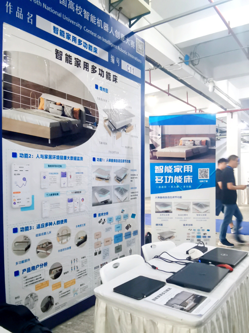 这款智能家用多功能床由20产品设计创新1班的王天怡、20装备2班的李尉和20工业1班的徐岩清在叶方平老师的指导下设计而成。