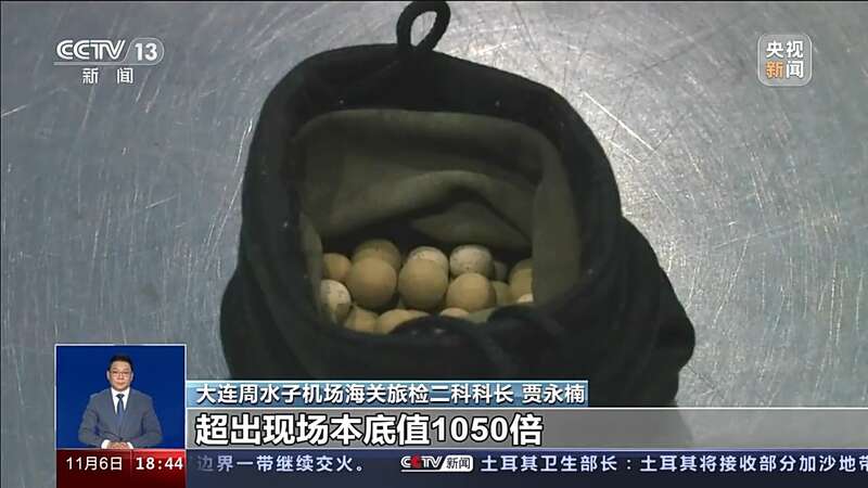 大连周水子机场海关旅检二科科长 贾永楠:当时这名入境旅客在通过海关固定式核辐射探测门时引发报警,该旅客解释为这是一袋“保健石”,核辐射量达到105微西弗/小时,超出现场本底值1050倍,经仪器结果显示为放射性物质是钍-232。