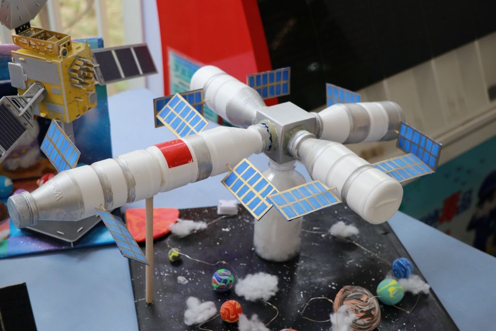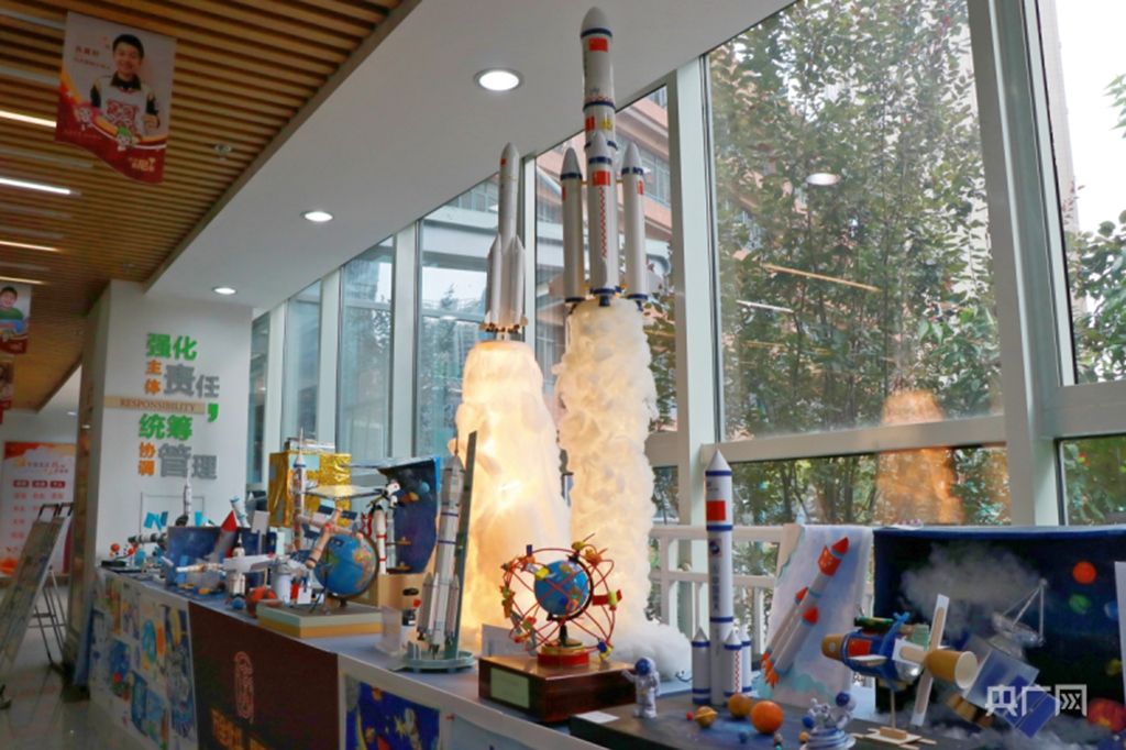 “它是由两部分组成,上面的火箭主体是由两种水管组成的,下面的烟雾是用一片片棉花粘上去的,再配上灯光,给人一种火箭发射般的感觉。”万全小学五年级17班的危思默介绍,“此次通过制作火箭模型,让我对科学知识和科学家精神有了更深入的了解。”来自六年级9班的吕昊轩则对北斗卫星模型爱不释手:“我们小组不仅研究北斗卫星导航系统的原理和性能,还通过制作模型,让大家更多地去理解。我要不断学习,长大后为国家作出更大贡献。”