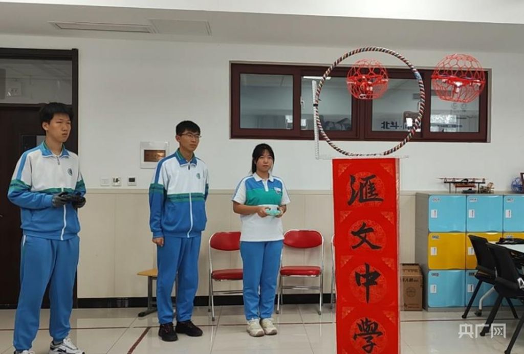 “呼……”几架无人机“足球”在学生的操控下腾空而起,在空中上演着精彩的“足球攻防”对抗。在汇文中学,学校形成了以无人机、大疆机甲大师等为中心的科技创新项目课程,科技已成为学生五育发展的燃料。