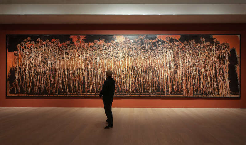 “葵园如山”是作者近20年间的人生况味和存在历史。葵园守望,反复吟咏,以岁月为笔,以沧桑入画。许江喜欢画葵,他笔下的葵,不仅是植物,更是象征。许江的葵总是成片出现,即使是独立的葵头,也多以成组的形式展出,群葵簇拥,聚成排山倒海的气势。