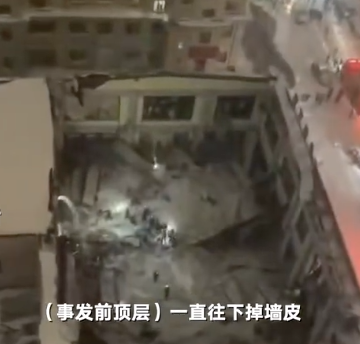 据新京报,其中一名自行脱险的幸存者称,坍塌前体育馆顶层一直往下“掉墙皮”,随后房顶发出“嘣嘣嘣”的声音,他当即叫馆内其余6人快跑,仅仅过去3秒整个顶层坍塌,他躲柱子下逃过一劫。