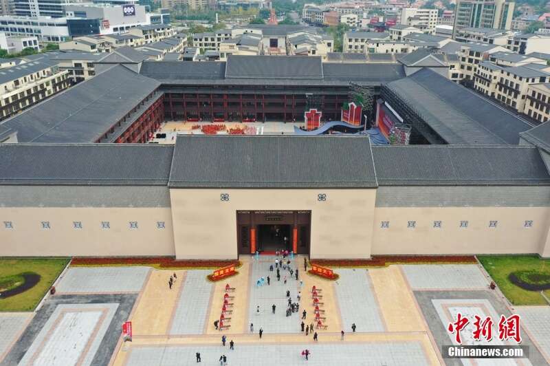 11月8日,江西龙南,游客和市民走进世界客家民俗文化城参观。世界客家民俗文化城是世界客属第32届恳亲大会主会场,内含世界客家非物质文化遗产馆、《走进赣州》陈列馆和文化艺术品博览馆,集客家文化、非遗展示、旅游观光、休闲娱乐、商贸、夜间经济等功能于一体,是“世界围屋之都”龙南的城市新名片、新客厅。(无人机照片)
