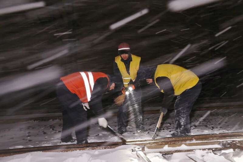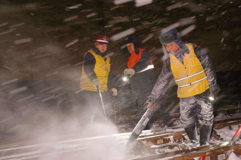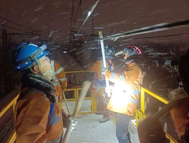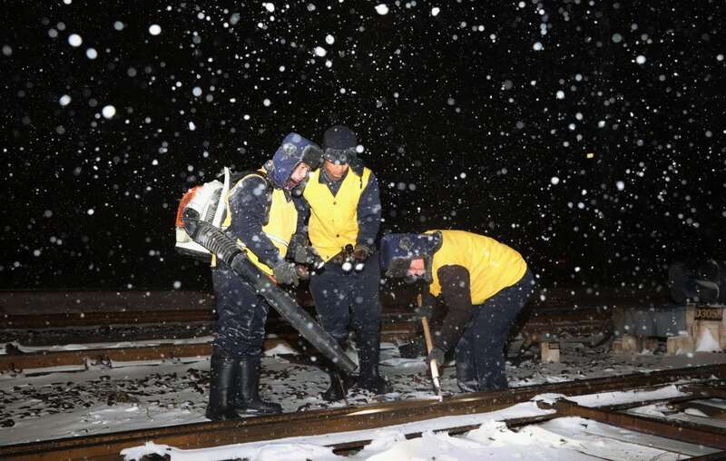 客运、货运、机务、工务、电务、车辆、供电等系统迅速启动除雪预案,成立除雪突击队。铁路职工带上风力除雪机、铁锹、扫帚等工具,不畏严寒,冲锋在扫雪除冰一线。