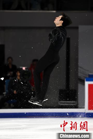 中国选手金博洋在男单短节目比赛中。中新网记者 何蓬磊 摄