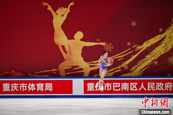 中国选手陈虹伊在女单短节目比赛中。中新网记者 何蓬磊 摄