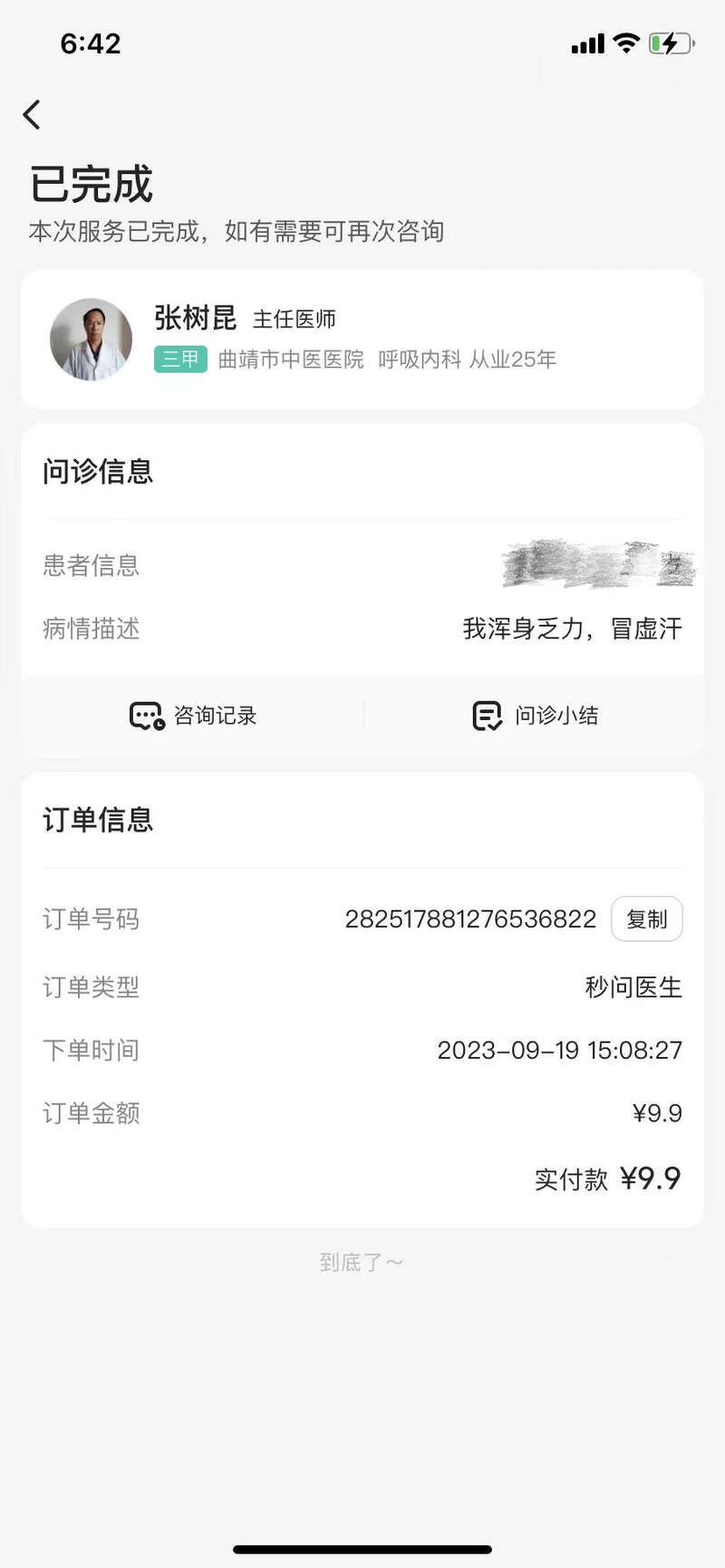 平台它有回复我,他说医生也有可以看内科资质的,他(医生)给我建议,也没有做什么诊断,还是(让我)根据自己的需要线下去就医,网上问诊确实是有很多弊端。