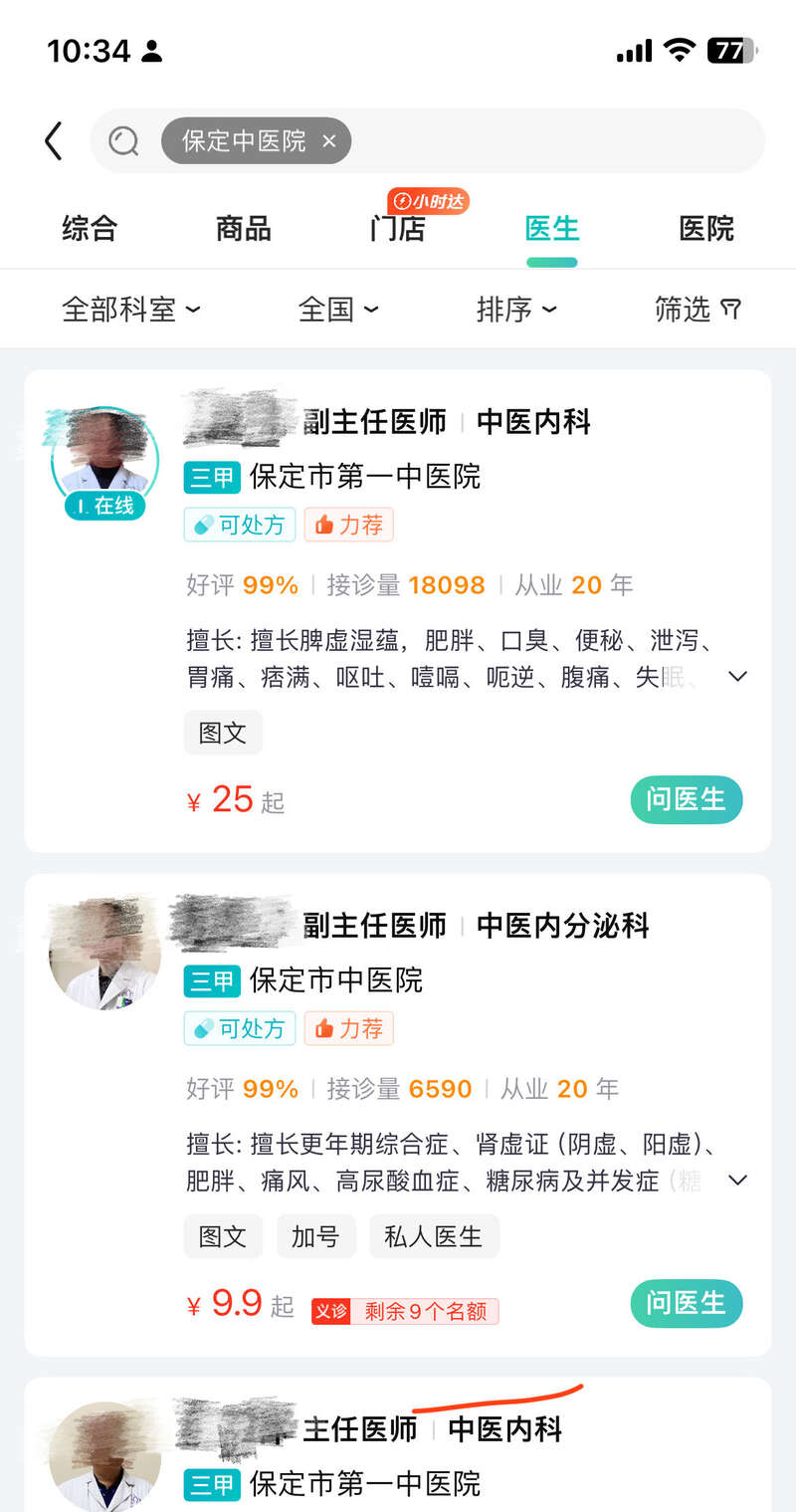 记者调查发现,何女士的遭遇并非个案,记者打开美团APP,搜索呼吸内科医生问诊,随后系统安排了三甲医院——开封市中心医院一位姓李的医生接诊,页面介绍,他是“12年呼吸内科经验主治医师”,经记者查询开封市中心医院官网,这位医生是肾内科医生,随后记者致电开封市中心医院,值班人员表示,医生在网上接诊,与医院无关,需要找网络平台。