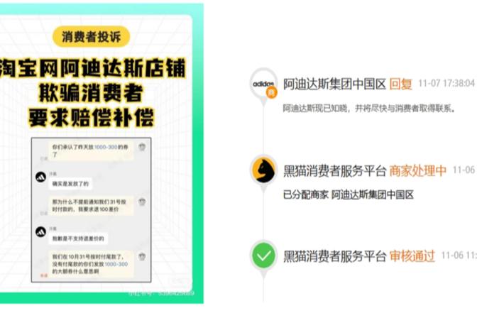 截至目前,阿迪达斯集团仅在黑猫投诉平台上表示已经知晓,正在与消费者联系,暂无其他回应。