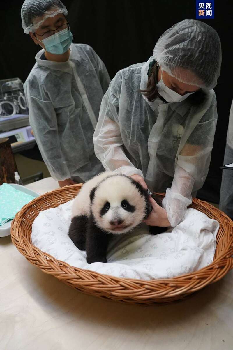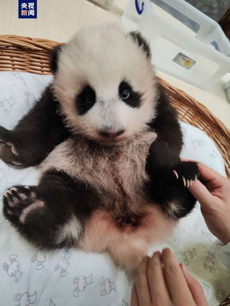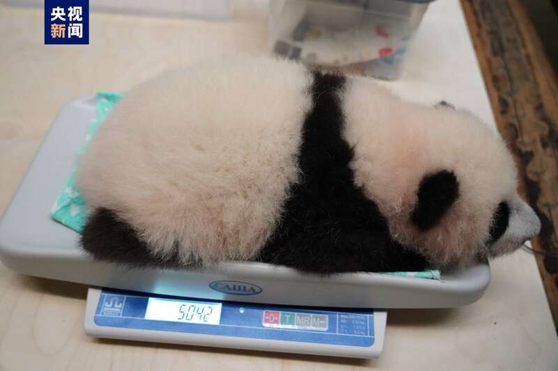 大熊猫幼崽现在状况良好,体重增至5042克,体长56.1厘米,含尾部的体长为63.2厘米。