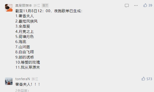 在7日的夜跑曲目征集中
