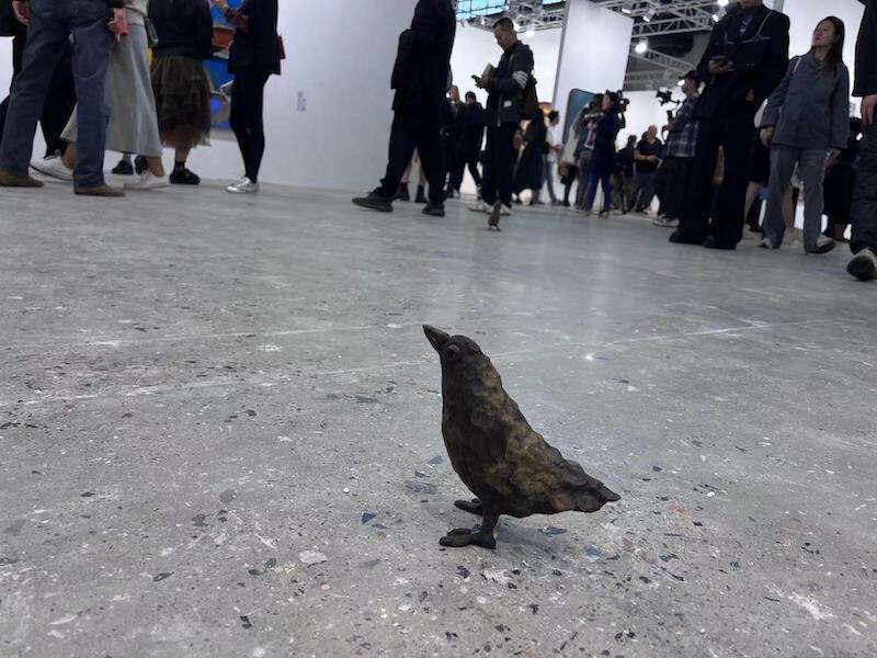 也正因为如此,即便在环境嘈杂的艺博会中,乌戈·罗迪纳散发着诗意气质的作品很容易被辨别。其中就包括了西岸赛迪HQ展位地上用青铜打造成的小鸟、施博尔展位铝制橄榄树(属“夜晚”系列),格莱斯顿画廊的个展呈现了乌⼽认知⾥明媚的“白天”。ART021梅陇赫画廊带来的“马”系列则代表大地和海洋。据画廊主卡迈勒·梅隆赫透露,乌戈·罗迪纳的作品被国际藏家收藏,售价70万英镑的安尼施·卡普尔的作品被国际藏家收入囊中。