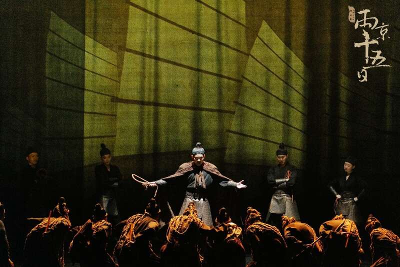 舞台剧《两京十五日》2022版改编自作家马伯庸同名历史题材小说,赵淼担纲导演,将肢体剧和戏曲元素融入历史题材故事中。无论是贯穿全剧的戏曲腔调、身段元素,还是化用京剧《三岔口》的片段,无一不用中国人的方式讲述中国故事。