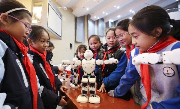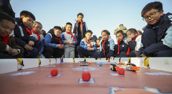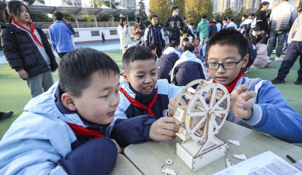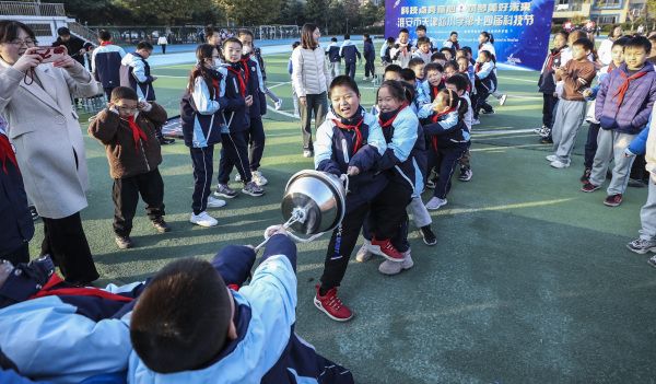 2023年11月14日,江苏省淮安市,一小学举办“科技点亮童心 筑梦美好未来”主题科技节活动,老师带领同学们通过机器人、机车组装、发电、航模等多种小实验,感受科学魅力,体验科学带来的快乐,营造浓厚的学科学、爱科学、用科学的校园科技氛围,培养激发学生们热爱科学的兴趣和探索精神。