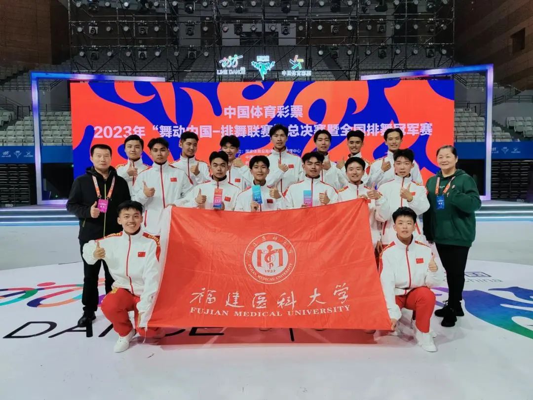 11月11日,由国家体育总局体操运动管理中心主办的2023年“舞动中国-排舞联赛”总决赛暨全国排舞冠军赛落下帷幕。 福建医科大学代表队 在全国总决赛中荣获高校普通院校组男生组大集体民族类自选项目 特等奖 、高校普通院校组男生组大集体初级串烧项目 特等奖 、高校普通院校组男生组大集体民族采风项目 特等奖 、高校普通院校男生组开放项目年龄组 特等奖 。同时我校陈丽妹老师荣获 “2023年度 排舞推广大使” 称号。