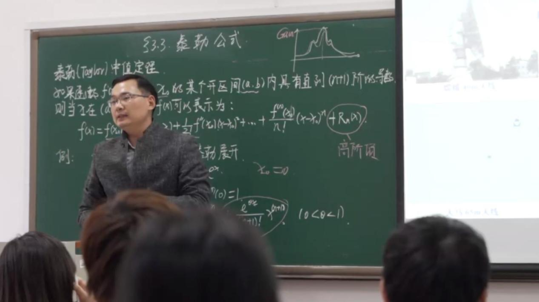 ▲周金柱老师在课堂上结合天线机电耦合理论模型讲解泰勒级数数学概念