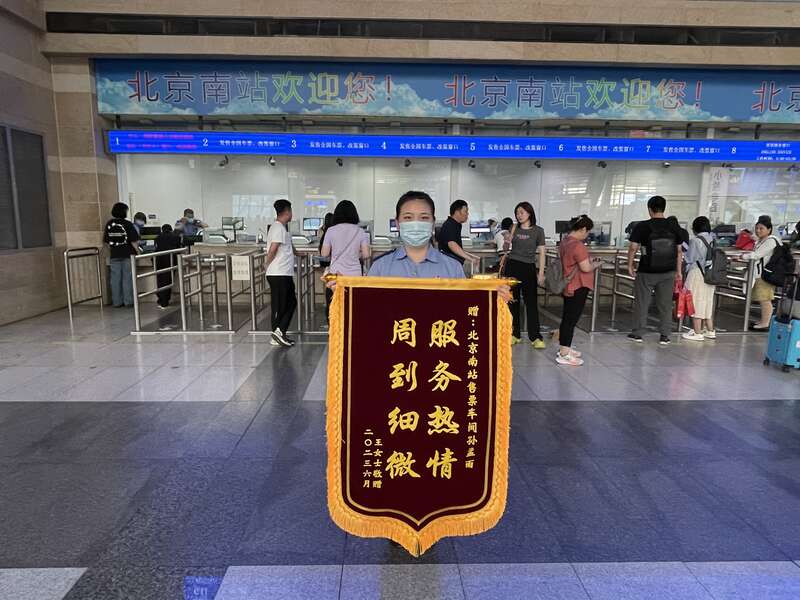 5月29日,旅客王女士来到北京南站爱心售票窗口,想要购买去济南西的车票。售票员孙孟雨在与她沟通时了解到,王女士要带着两个行动不便的老人一起出行,她耐心询问乘车日期及需求后,主动为王女士推荐有无障碍车厢的G23次列车,又询问乘务员列车在济南西停站开门方向,摸索出从检票到乘车的最佳路线。