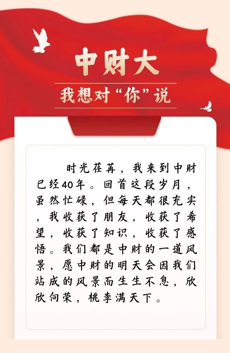 2023年9月,在第三十九个教师节到来之际,学校党委教师工作部以党的二十大精神和习近平总书记教师节重要指示精神为指引,继续推出“我与中财•十载之约”第三阶段宣传活动。面向来校十年以上的服务保障工作者广泛征稿,通过每一段平凡但动人的故事,每一句真挚且热忱的话语,引导广大教职工自觉培育和践行社会主义核心价值观,加强师德修养,提升责任感、使命感和荣誉感。